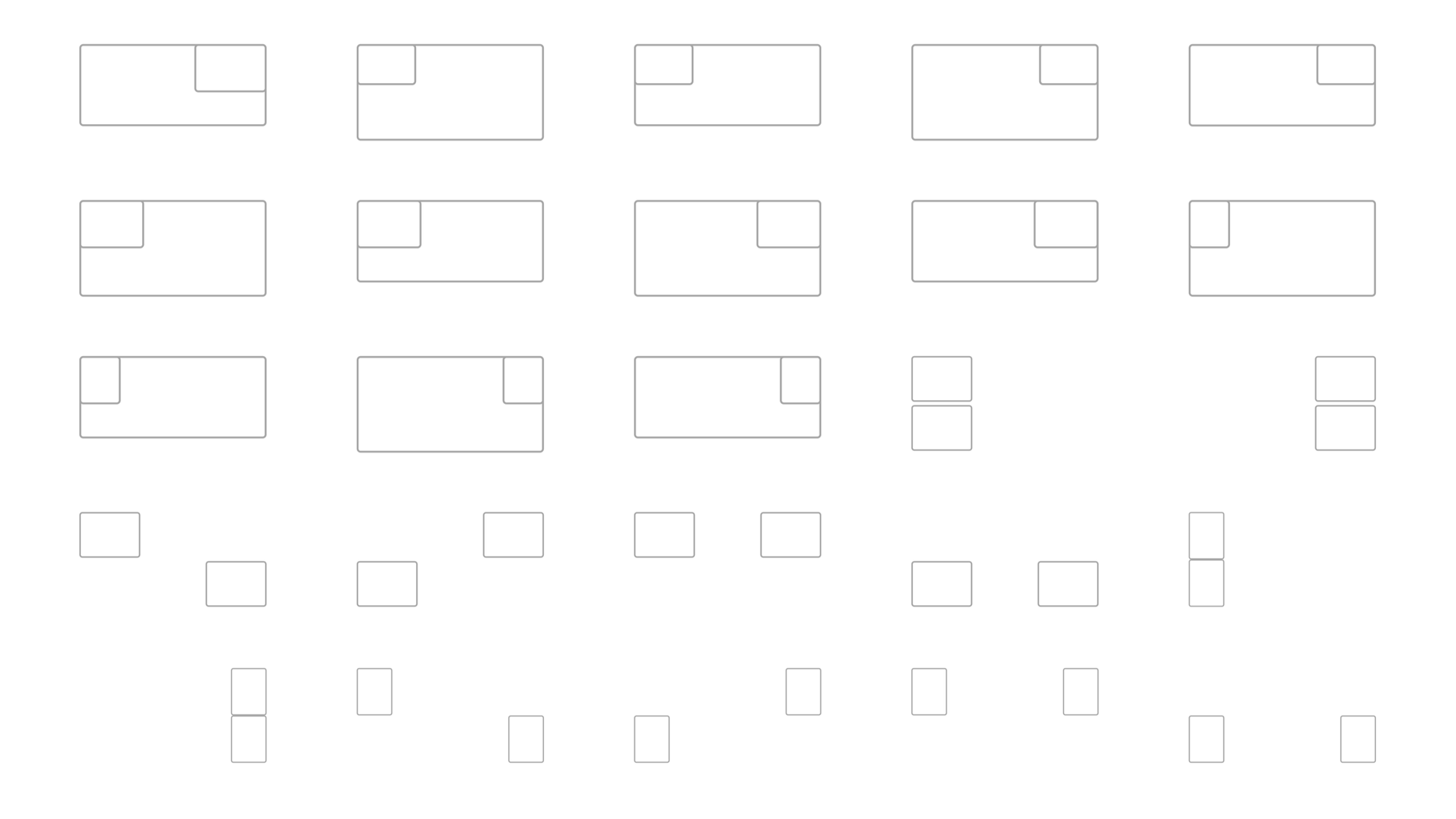 * Multiple layouts accommodate space at bottoms/sides/tops/middle for text, widgets, lower 3rds, logos, etc.